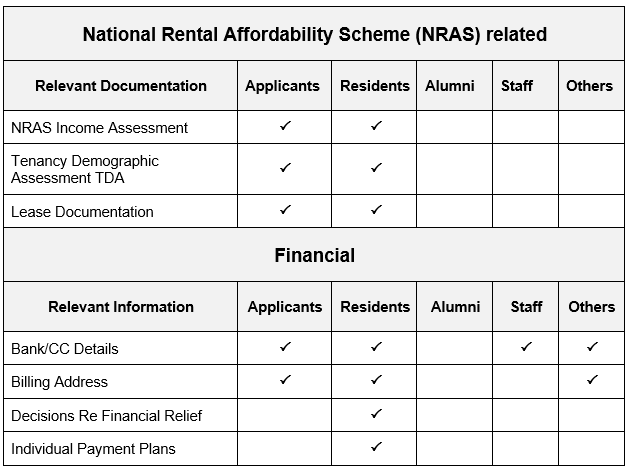 Information is collected through the UWA Central Application Portal, the College’s own portal, interviews, and email correspondence. We collect information for purposes such as assessing applications, ensuring a balanced demographic, caring for residents, managing alumni relationships, complying with government requirements (NRAS), and managing College finances.