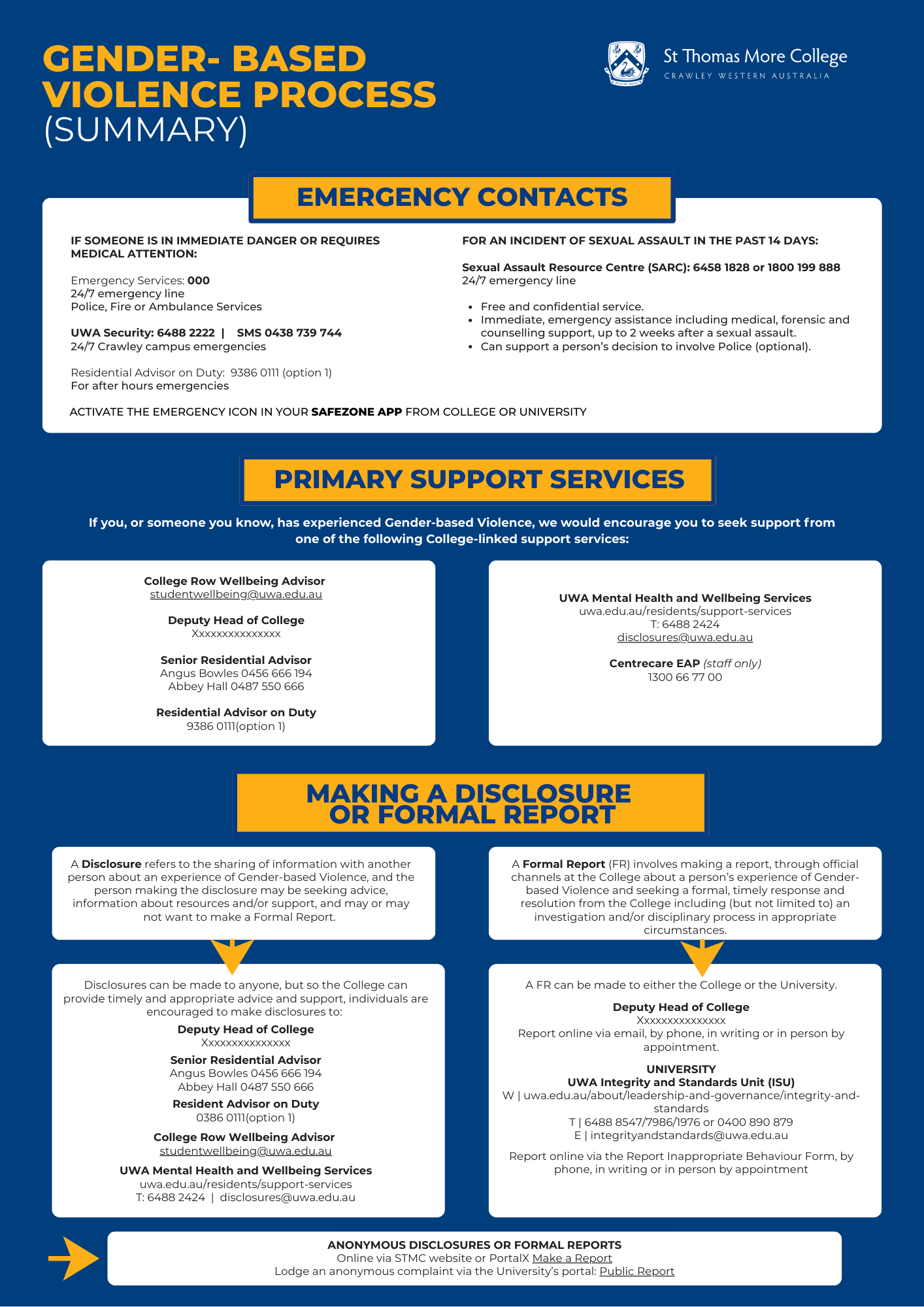 Staff volunteers who provide confidential advice, preliminary support and information to staff/students.